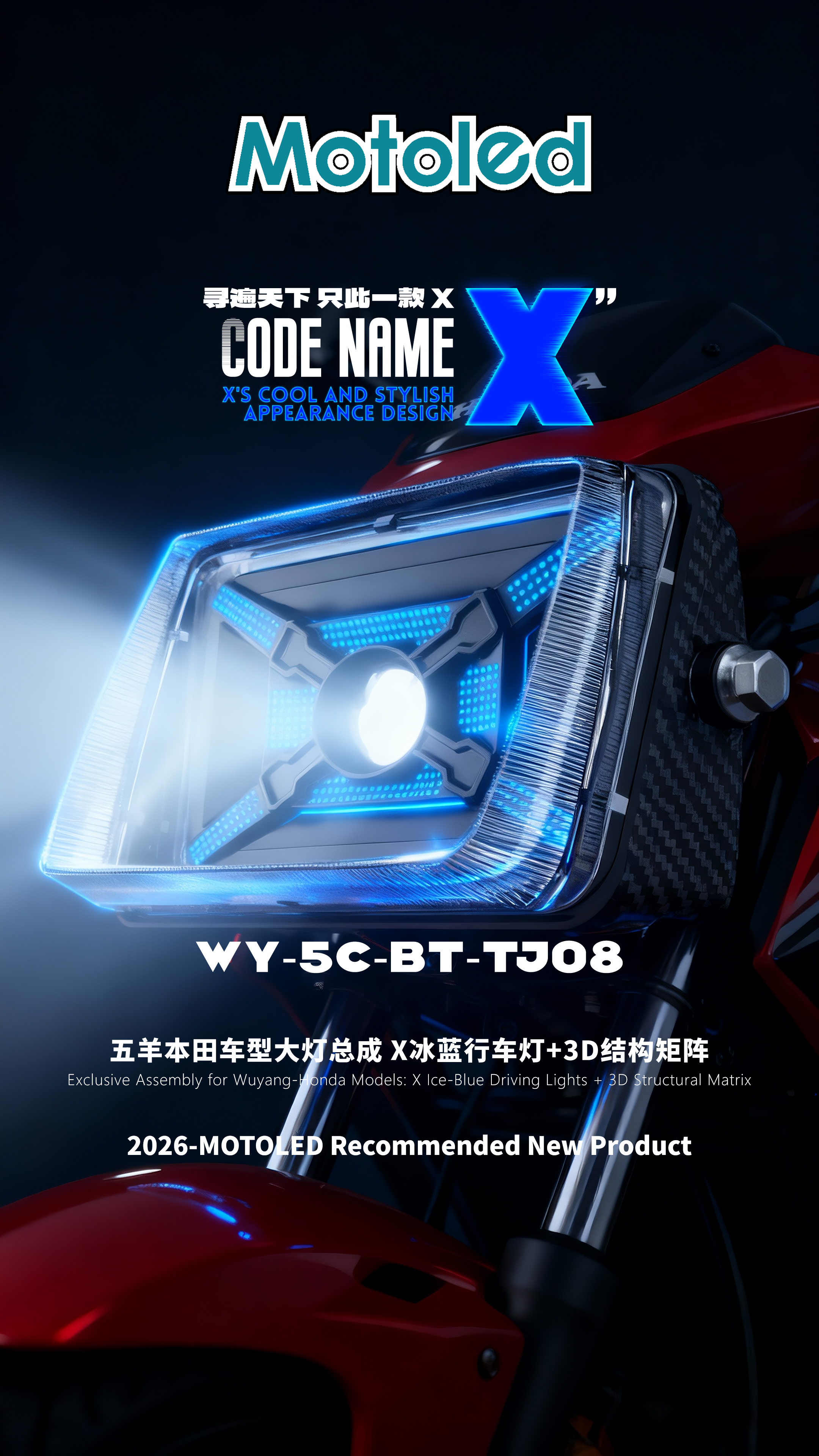 Honda Exclusive Assembly Series, Carbon Fiber Exterior Shell, X-shaped Ice Blue Ambient Running Lights, Dual-beam Projector Headlights.